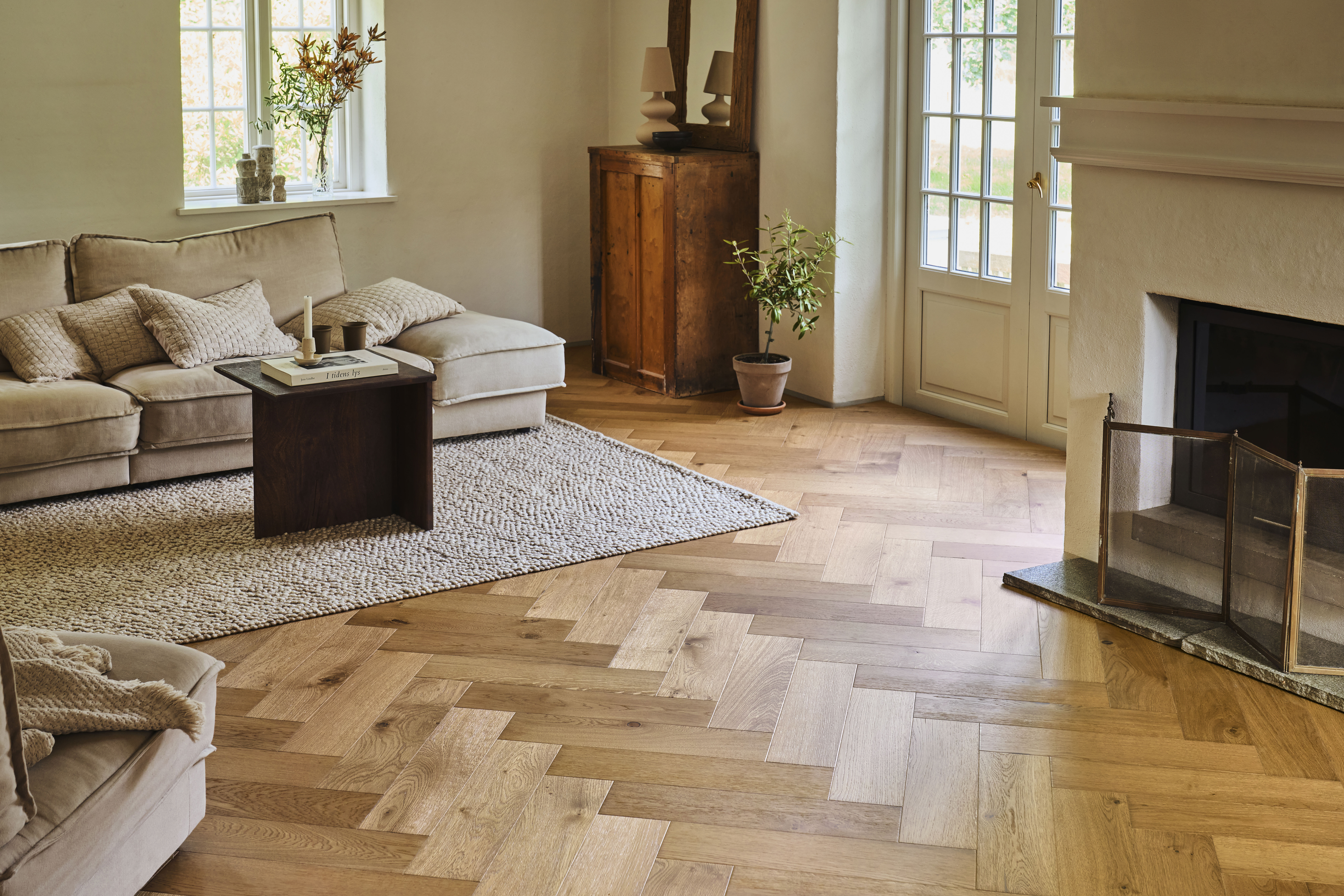 – Jeg vil bruge gulvet som fundament og arbejde videre med naturinspirerede farver som støvet blå, kalket hvid, salviegrøn og sand. Og så vil jeg indrette med bløde tekstiler som hør og bomuld, og tilføje naturlige materialer som en flettet kurv eller en håndlavet skål for at give hjemmet sjæl.