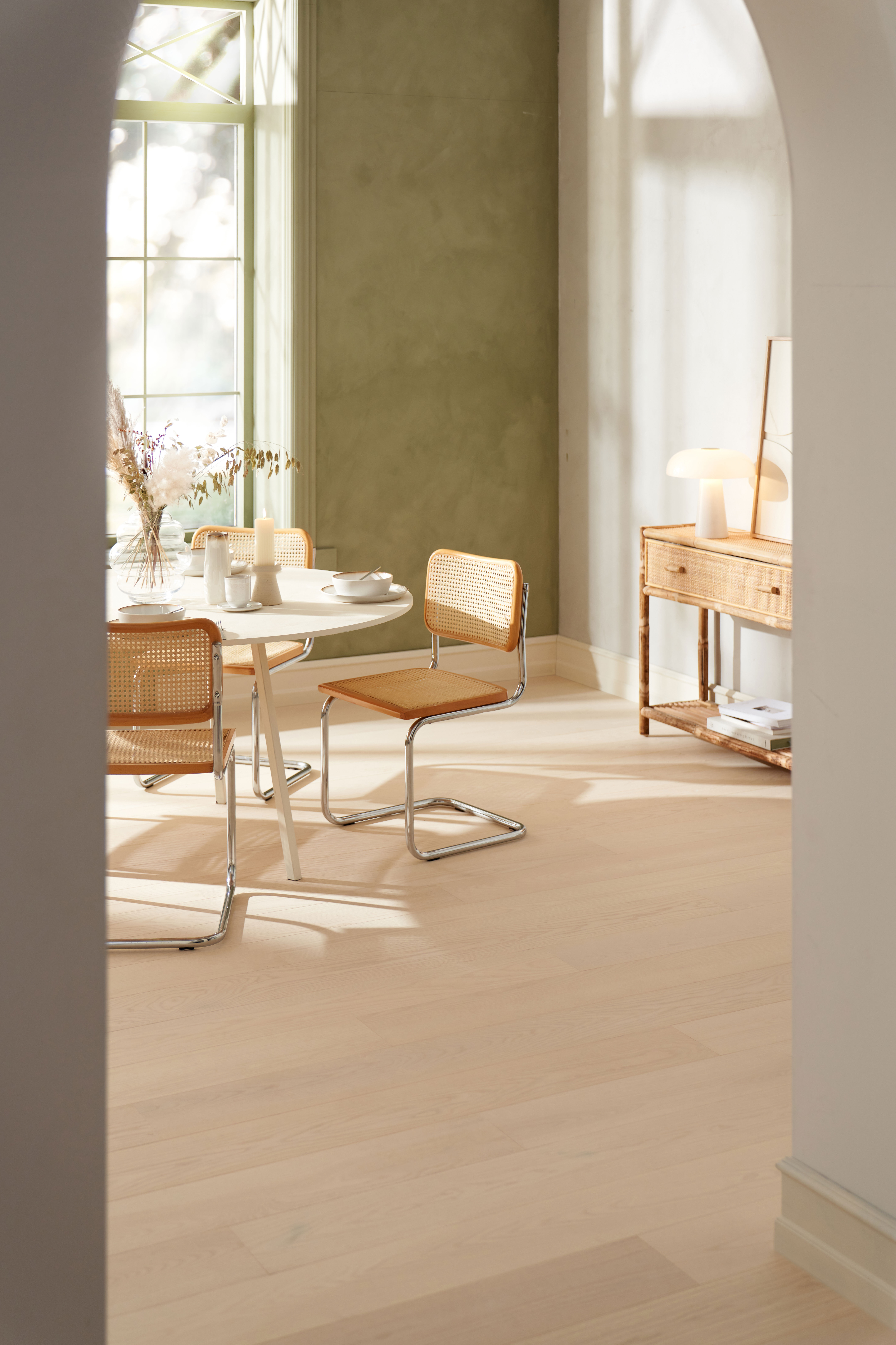 – Trægulve er et fremragende basismateriale i hjemmet, fordi de kombinerer funktionalitet, æstetik og holdbarhed på en perfekt måde. Men først og fremmest tilfører de en varme og en naturlig skønhed, som skaber en indbydende og hyggelig atmosfære, fortæller Dorte Dahl.