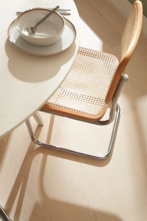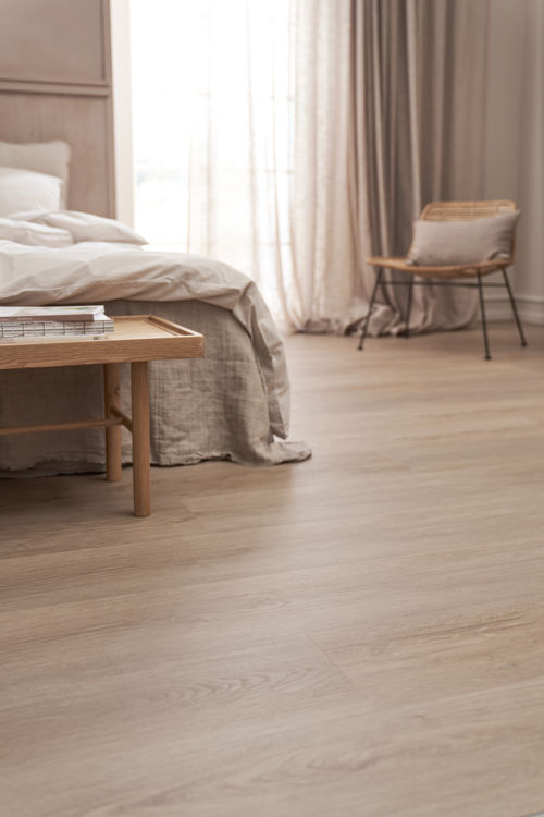 – Farver spiller en stor rolle, når du kombinerer trægulve med metalliske effekter. Varme farver som natur-eg, stonelook og farvetoner i aluminium passer godt med jordfarver som duset grøn, beige og varme sandfarver. De understøtter nemlig gulvenes varme, siger Dorte Dahl og tilføjer: