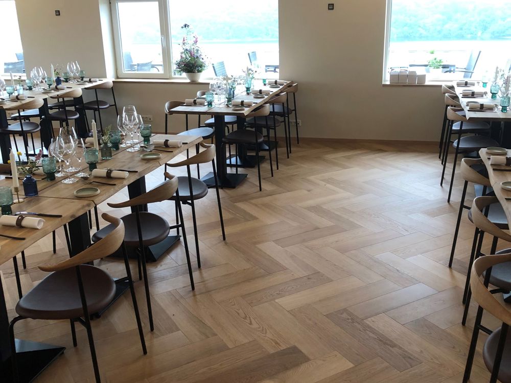 Den 1. juli genåbner Restaurant Bramslev Bakker efter en totalrenovering af de velkendte lokaler ud til Mariager Fjord. Under renoveringen har det nye trægulv i eg fra den lokale producent Timberman været med til at skabe en rød tråd igennem hele indretningen.