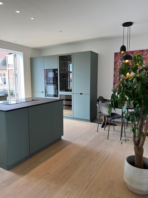 - Det var en nærmest umulig opgave at finde det helt rigtige gulv – så der er lagt mange tanker og timer i valget. Vi har praktisk talt ledt og ledt, men så fandt vi en prøve på nogle flotte egetræsplanker fra Timberman, som vi forelskede os pladask i, fortæller hun.