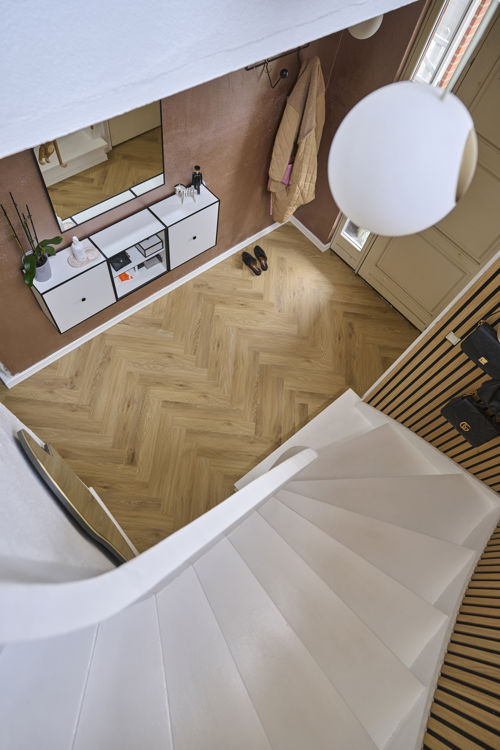 Sildebenstrenden oplever man i høj grad også hos gulvvirksomheden Timberman, som leverer gulve i træ, kork og vinyl, og som derfor netop har lanceret en sildebensmønstret udgave af deres populære Novego-vinylgulve.
