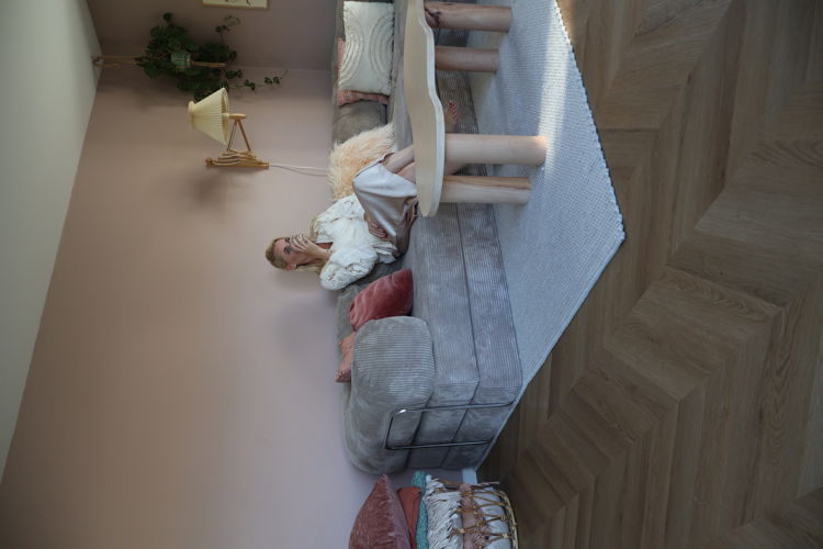 – Jeg ønskede mig et sildebensgulv og havde set mig lun på denne model. Men jeg er glad for, jeg tog i showroomet, for jeg endte med at vælge en anden farve, end den jeg havde tænkt på, nemlig den mørkere Lyon. I byggemarkedet kiggede jeg på en planke, men i showroomet kunne jeg se gulvet lagt, siger Nanna Pretzmann.