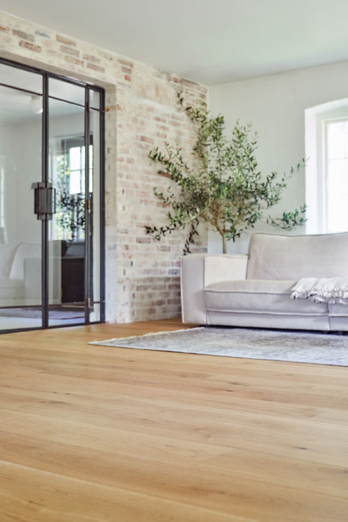 – Jeg vil bruge gulvet som fundament og arbejde videre med naturinspirerede farver som støvet blå, kalket hvid, salviegrøn og sand. Og så vil jeg indrette med bløde tekstiler som hør og bomuld, og tilføje naturlige materialer som en flettet kurv eller en håndlavet skål for at give hjemmet sjæl.