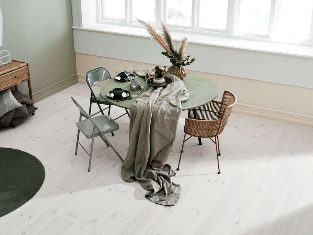 - Ligesom med egetræ har fyrretræsplanker med markante åretegninger og knaster et elegant og stiligt udtryk, som er helt i tråd med den minimalistiske indretning, vi generelt sværger til i Skandinavien – og når det ikke er til at få fingrene i egetræ, kan fyrretræsplanker meget vel blive noget, vi kommer til at se pryde i flere hjem, siger Tine Hundrup.