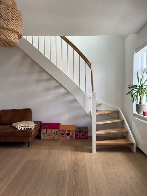 Nu har hun selv sammen med sin kæreste og datteren Wilma på 1 år skrevet og lagt et kort under lejlighedens nye gulv, som kan give fremtidige beboere samme fornemmelse af historiens vingesus – men først om mange år. Familien har nemlig som en del af et renoveringsprojekt udskiftet alle gulve i lejligheden, som fordeler sig på to sale, hvor der før var tørreloft på 1. sal, og valget af det smukke egetræsgulv er valgt ud fra et ønske om at have glæde af gulvet, som binder hjemmet sammen, i mange år.