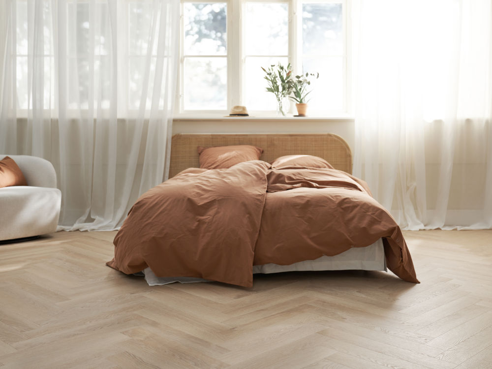 – Du får et ta’-selv-bord af designmuligheder med sildebensgulve. Du kan eksempelvis vælge den traditionelle sildeben, de fleste af os kender, eller den franske sildeben med v-mønster, som skaber en fed bevægelse i rummet. Du kan vælge at lægge sildebensgulvet helt lige eller diagonalt afhængig af det udtryk, du søger, afslutter Kimmie Brinch.