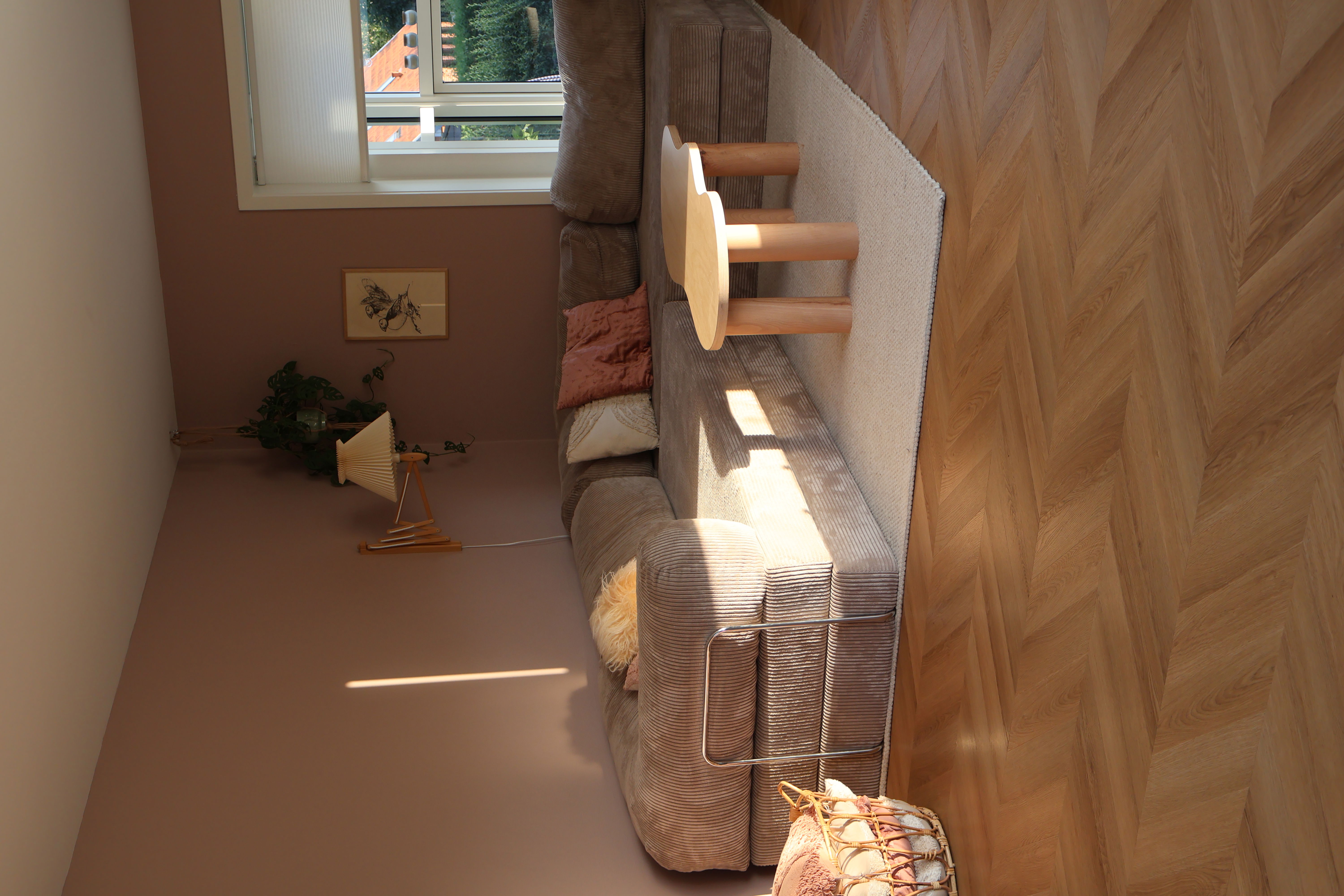 Nanna Pretzmann (@nannapretzmann) overtog et håndværkertilbud i Aalborg, som hun løbende har istandsat. Valget af gulv blev Novego Chevron fra Timberman, som er lagt i hele etagen. Et valg, Nanna Pretzmann beskriver som en ’gamechanger’.